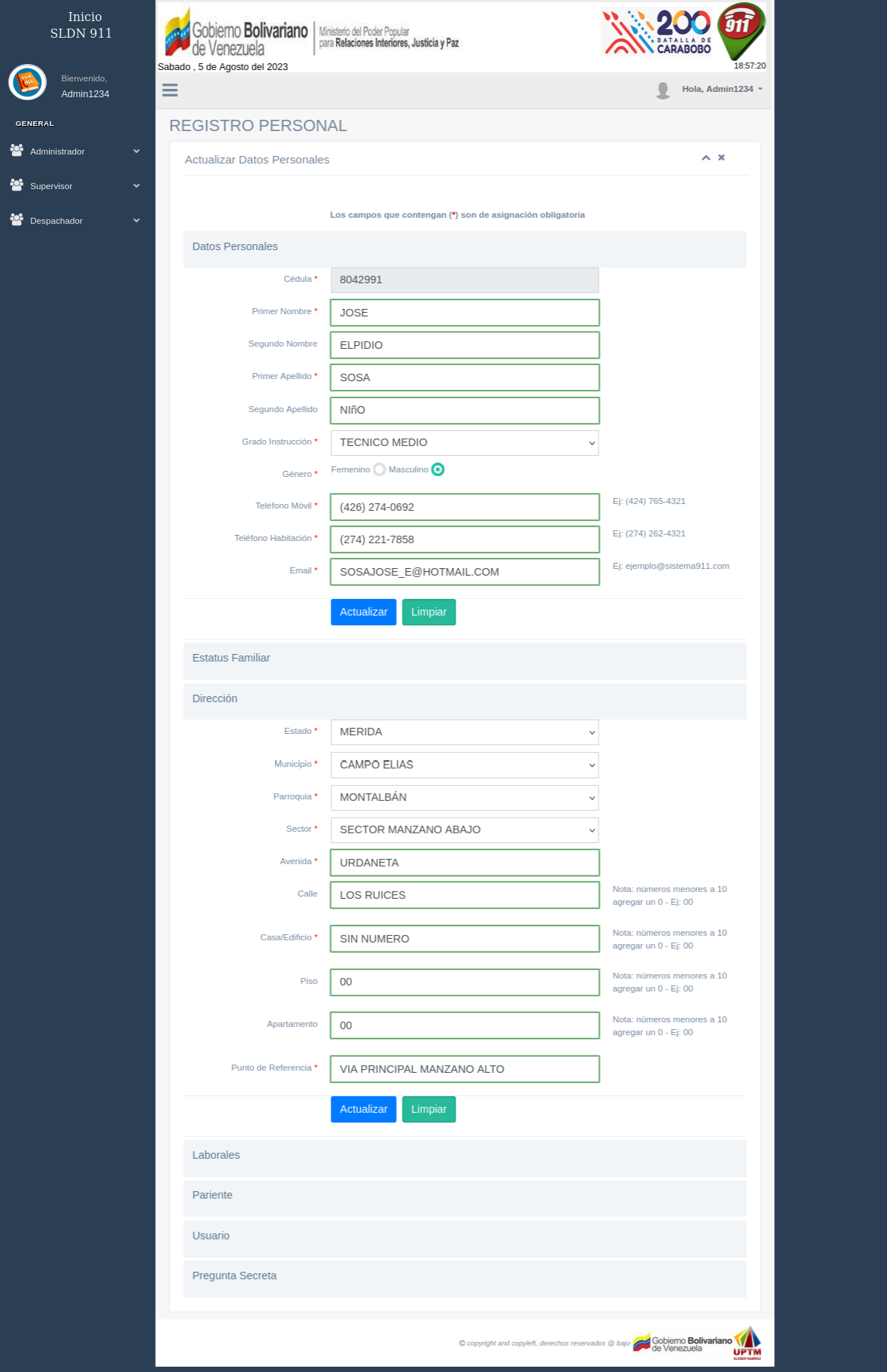 Sitio web diseñado y desarrollado en experiencia de usuarios, con herramientas de desarrollo Front-end y Back-end. Este sistema posee una cantidad de elementos que permite agilizar los procesos administrativos y de operaciones relacionadas al registro y seguimiento de llamadas de emergencias. Este sistema posee 04 niveles de usuarios, con acceso a varios acciones desde un menú y panel de herramientas, que le permitirá al usuario registrar, consultar, editar, generar reportes. Este sistema llevará entonces y control con órden cronológicos de los protocolos de recepción y entrega de guardias. El sistema de información es solo para uso interno, es dercir, su funcionamiento y acceso es por red LAN. Ha sido desarrollado e implementado para el Centro de Comando, Control y Tecnologías VEN-9-1-1, Mérida, ente adscrito al Ministerio del Poder Popular Interior, Justicia y Paz.